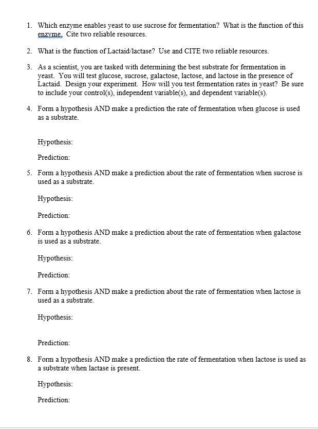 Solved 1 Which Enzyme Enables Yeast To Use Sucrose For Chegg Com